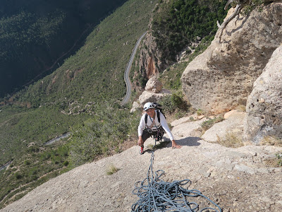 temps què no escalàvem plegats. Anem al Serrat del Monjos a fer la via “Último