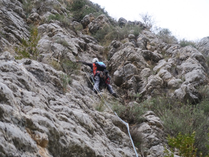 segon ràpel no corre i hem de remuntar 50m, aquest dia arribem amb les frontals